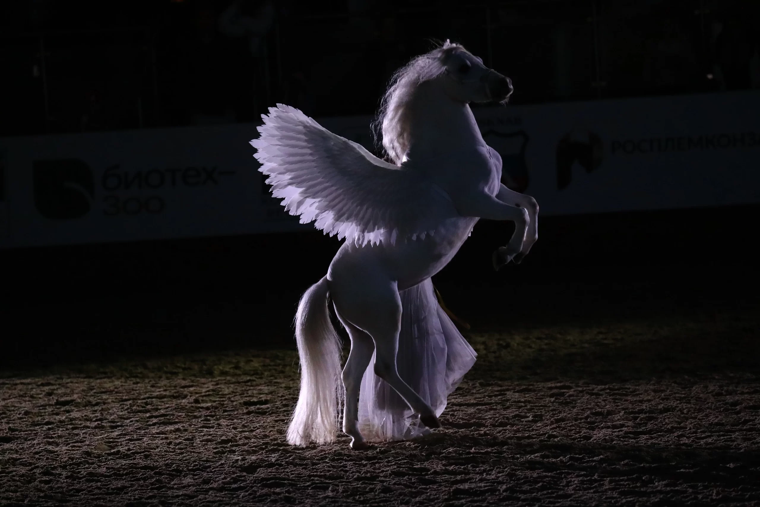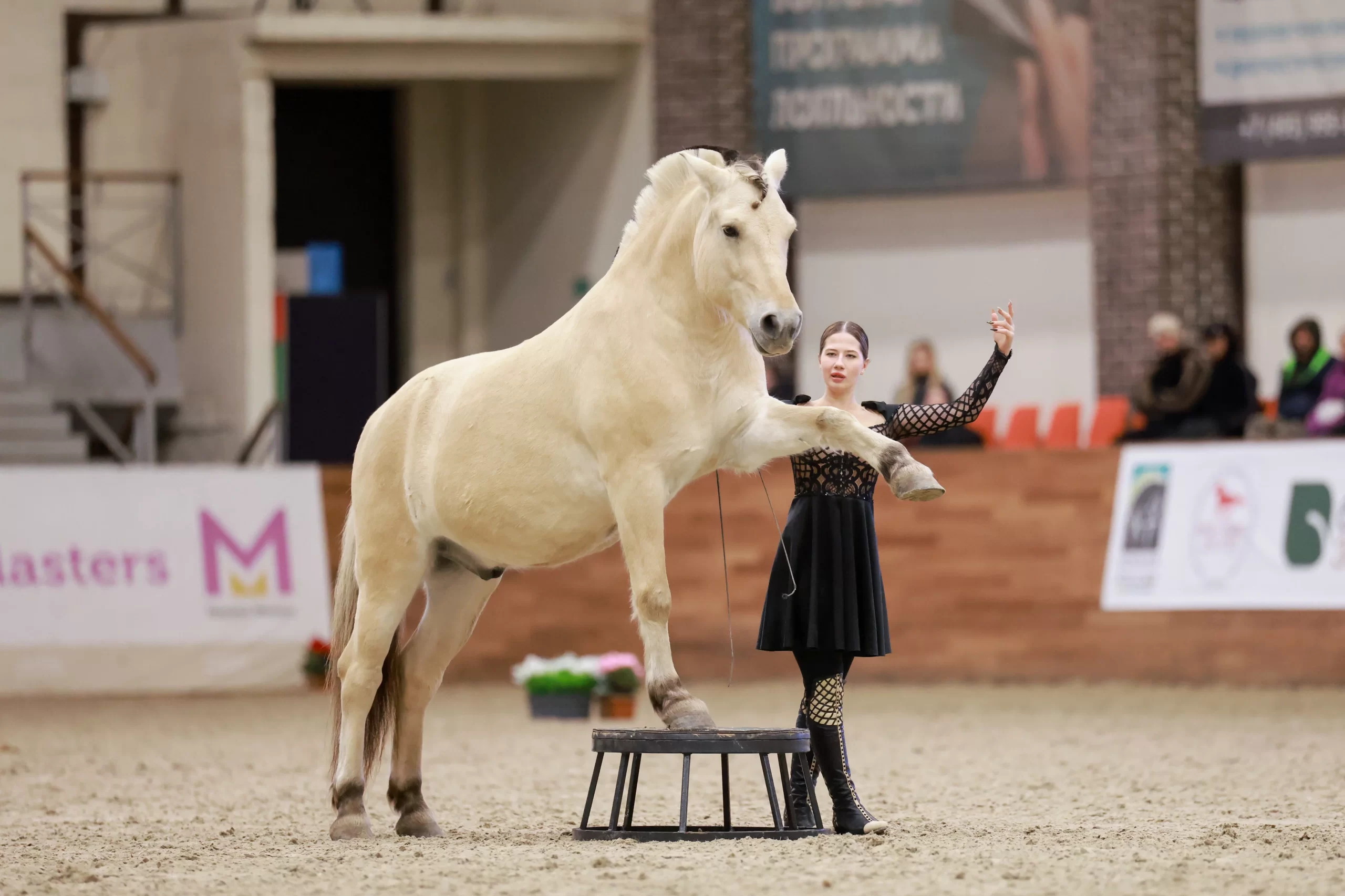 - Номер с пони Улей — нежная работа на свободе с белой пони, включающая элементы высшей школы.